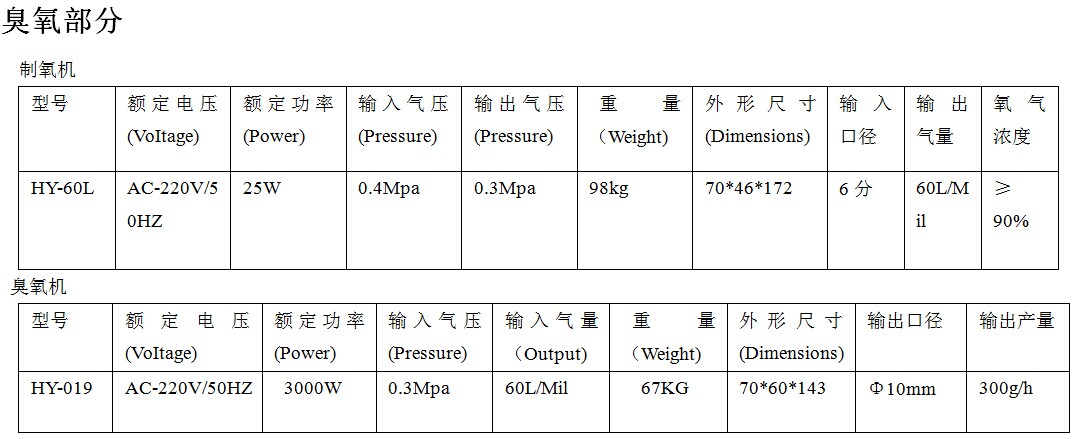 2.按使用的氣體原料劃分,有氧氣型和空氣型兩種。氧氣型通常是由氧氣瓶或制氧機供應氧氣。空氣型通常是使用空氣(如壓縮空氣)作為原料。由于臭氧是靠氧氣來產生的,而空氣中氧氣的含量只有21%,所以空氣型發生器產生的臭氧濃度比氧氣型稍低。而瓶裝或制氧機的氧氣純度都在90%以上,所以氧氣型發生器的臭氧濃度較高。在環境消毒時,通常使用空氣型發生器。在水處理時,應優先考慮氧氣型發生器。但如果消毒飲用水時,發生器需要配合舊式臭氧混合塔使用,則只能選用空氣型。