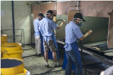 9.噴色 抹色 將衣物在洗水后,用人手將涂料或者直接料涂抹或者噴灑在衣物表面,制作懷舊效果